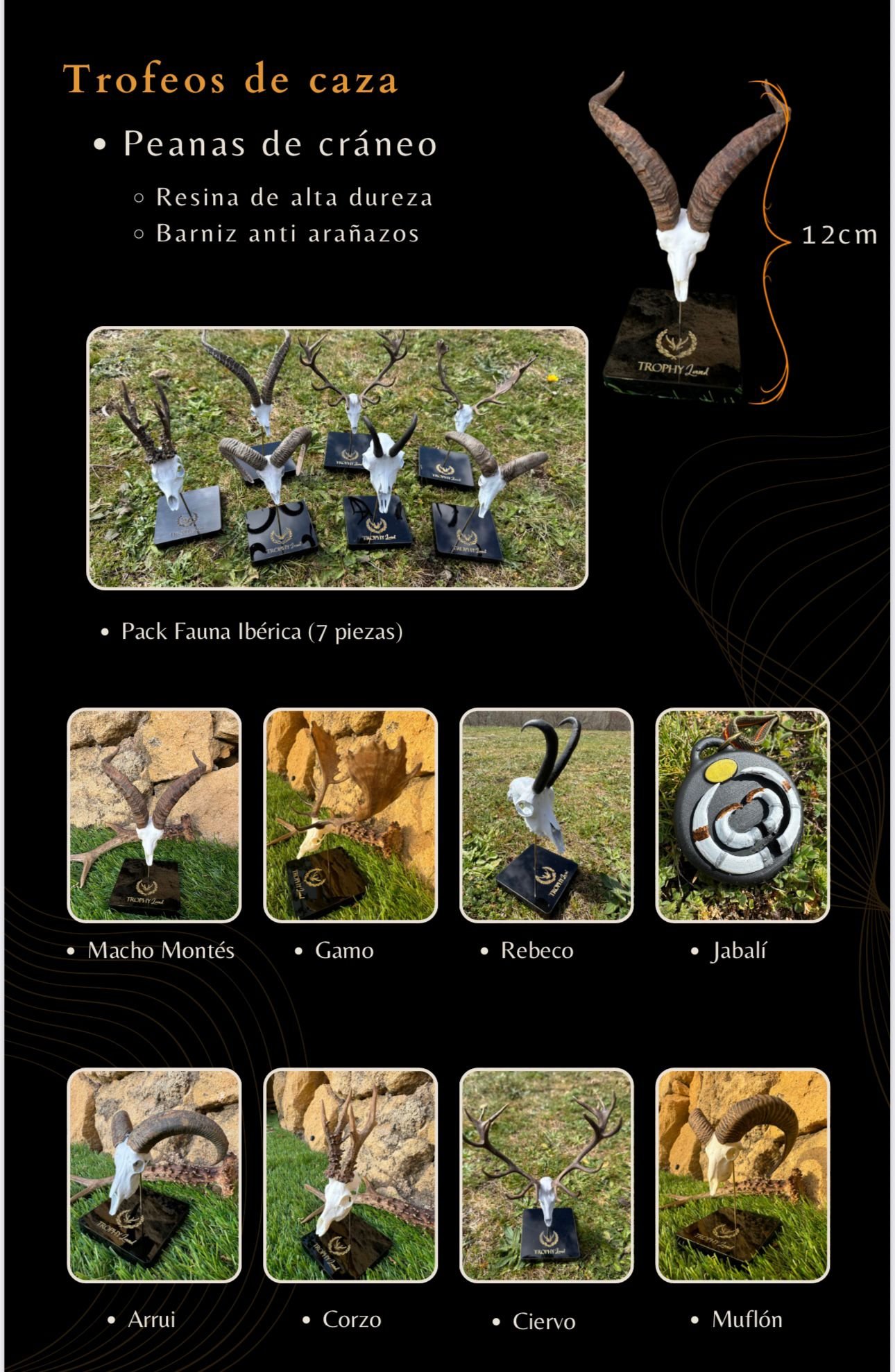 Todas son réplicas de trofeos originales, seleccionados por nuestro equipo para representar a la perfección cada especie de nuestra fauna ibérica.